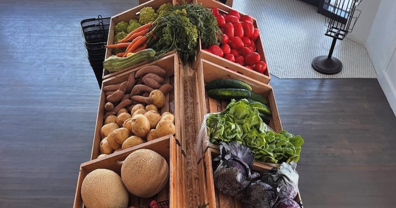 Hayley’s Grains, located on Main Street in Taylor, Texas, is a neighborhood grocery offering Texas-grown produce, local meats, and responsibly sourced pantry staples.